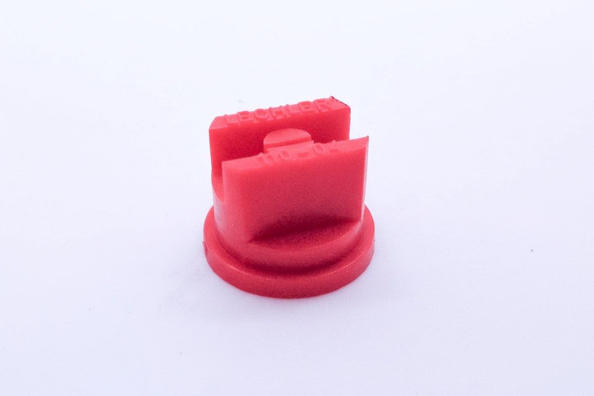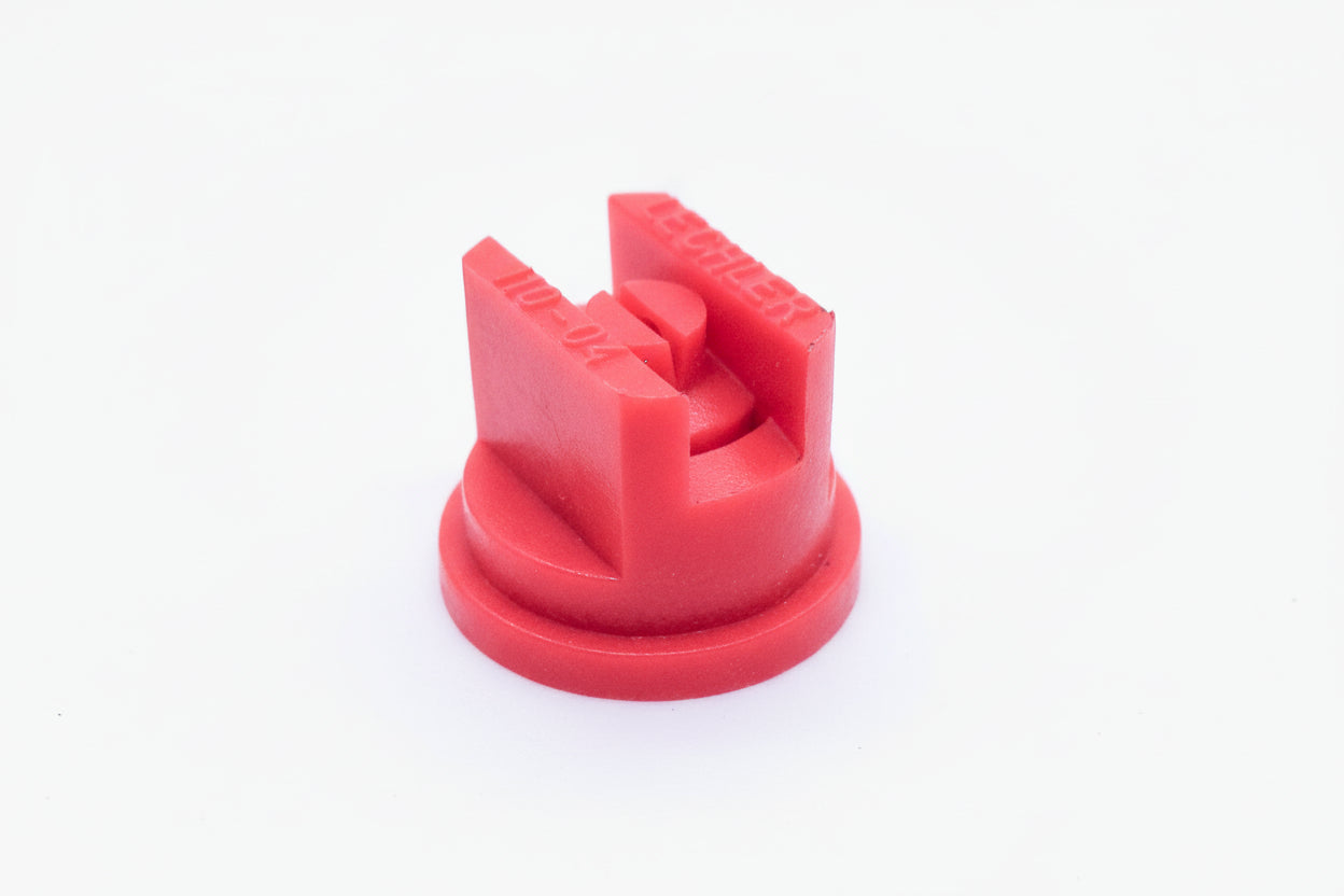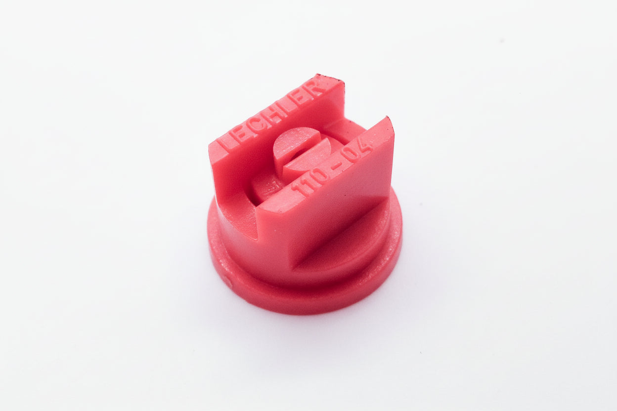Boquilla de aspersión de abanico ST fabricada en Alemania con ángulo de 110 grados, modelo Lechler ST110-04. Cuenta con codificación por colores conforme a la norma ISO 10625 para identificación rápida y precisa.