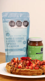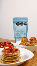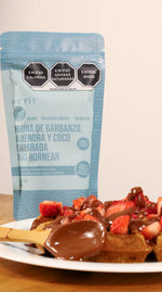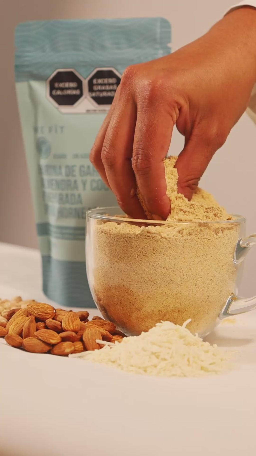 Sin gluten y con ingredientes naturales: harina de almendra, coco y garbanzo; ¡solamente agrega leche, huevo y/o el sabor de tu elección y disfruta!