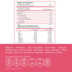 Manzana, plátano, fresa, limón, goji berry, espinaca, zanahoria, brócoli, sabor a manzana.