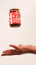 Receta 100% de familia mexicana. Es uno de nuestros productos más vendidos: hecho de manera artesanal, sin conservadores con ACEITE DE OLIVA EXTRA VIRGEN de la más alta calidad, mezcla de chiles, cacahuate y ajonjolí.