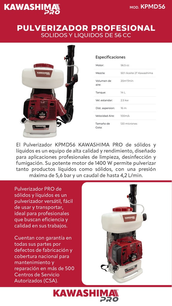 Pulverizador Kawashima PRO de solidos y liquidos Kawashima Pro KPMD56