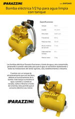 Bomba de agua eléctrica 1/2 hp Parazzini BHP2440