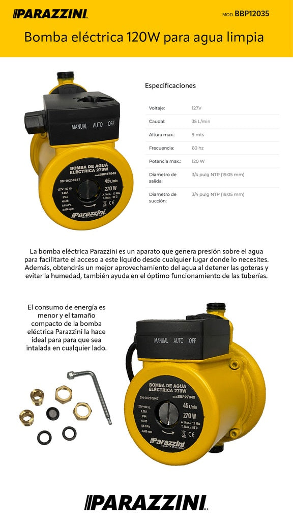 Bomba de agua eléctrica 120W Parazzini BBP12035