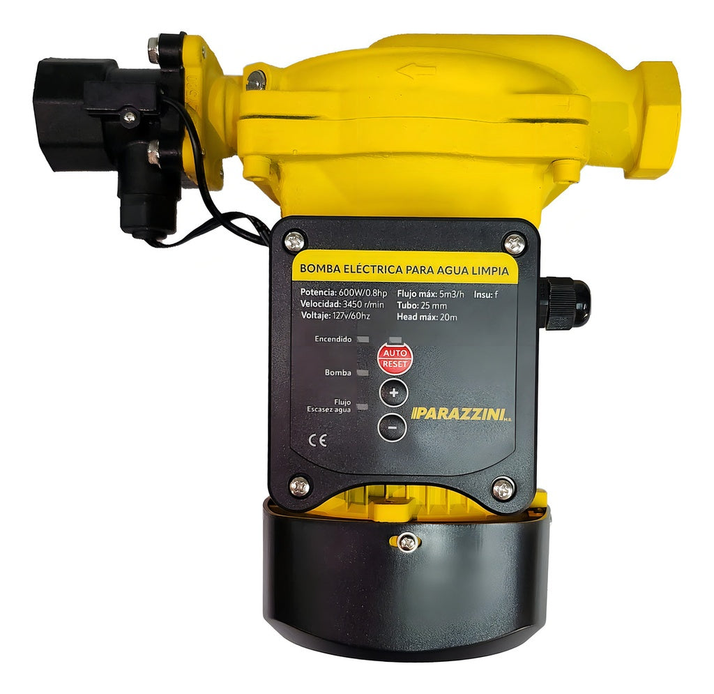 otente bomba Parazzini  BEP400 de 400 W con motor de 0.50 HP y controlador inteligente optimiza la presión en sistemas como calentadores, lavavajillas y lavadoras. Funcionamiento automático, capacidad para presurizar hasta 6 servicios simultáneos y elevación de líquidos a una altura de 21 metros. Diseño con protecciones contra funcionamiento en seco y válvula check en la descarga para seguridad y durabilidad. Alta eficiencia energética.