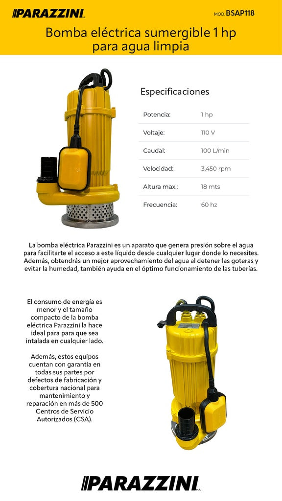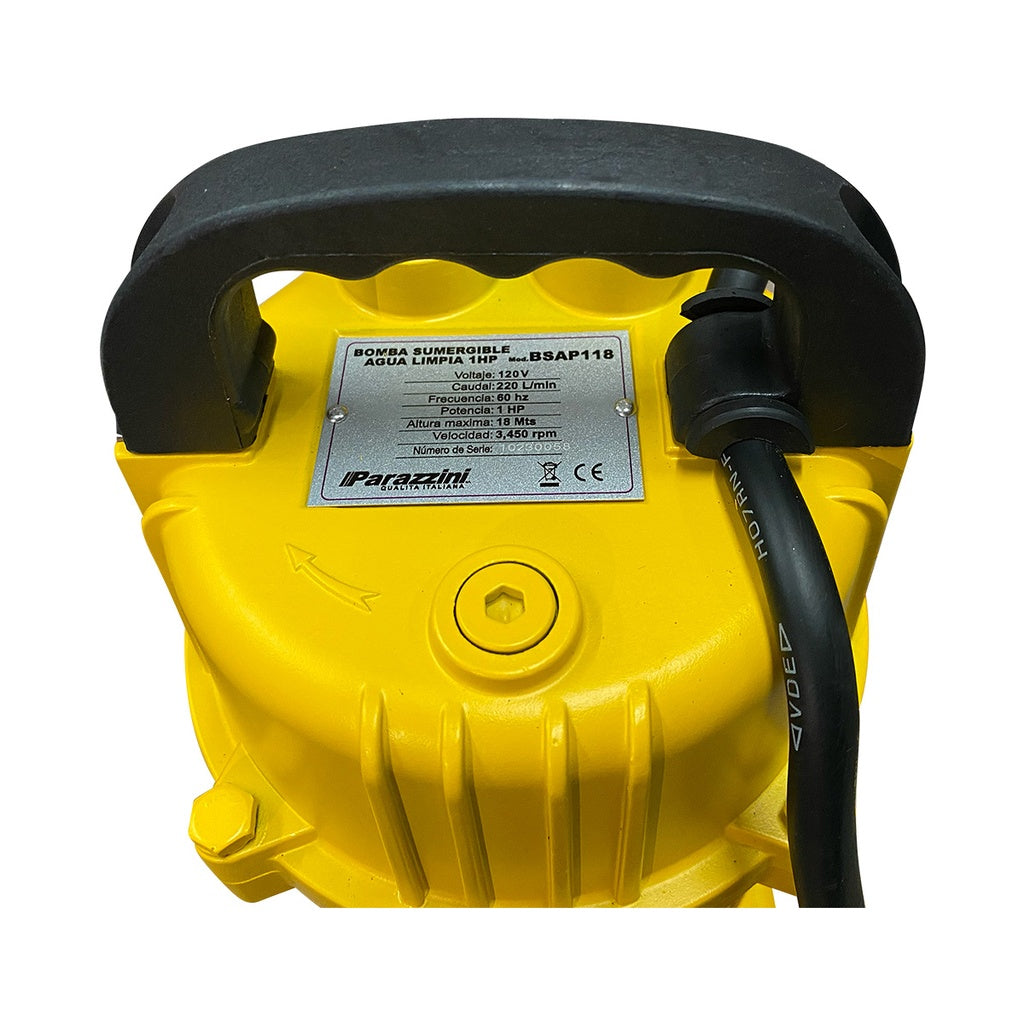 Bomba sumergible agua limpia 1 HP Parazzini BSAP118