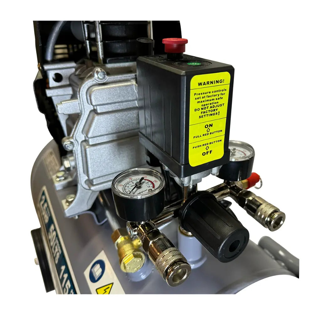 Compresor de aire de 2.5 hp con tanque de 50 litros, diseñado para aplicaciones profesionales y de taller. Cuenta con doble conexión rápida que permite conectar múltiples herramientas simultáneamente, optimizando tu flujo de trabajo. Incluye kit completo con manguera de alta resistencia y pistola de gravedad para aplicaciones de pintura y acabados. La marca Power Hunt garantiza durabilidad y rendimiento confiable en trabajos intensivos. Ideal para carpintería, metalurgia, pintura automotriz y mantenimiento industrial.