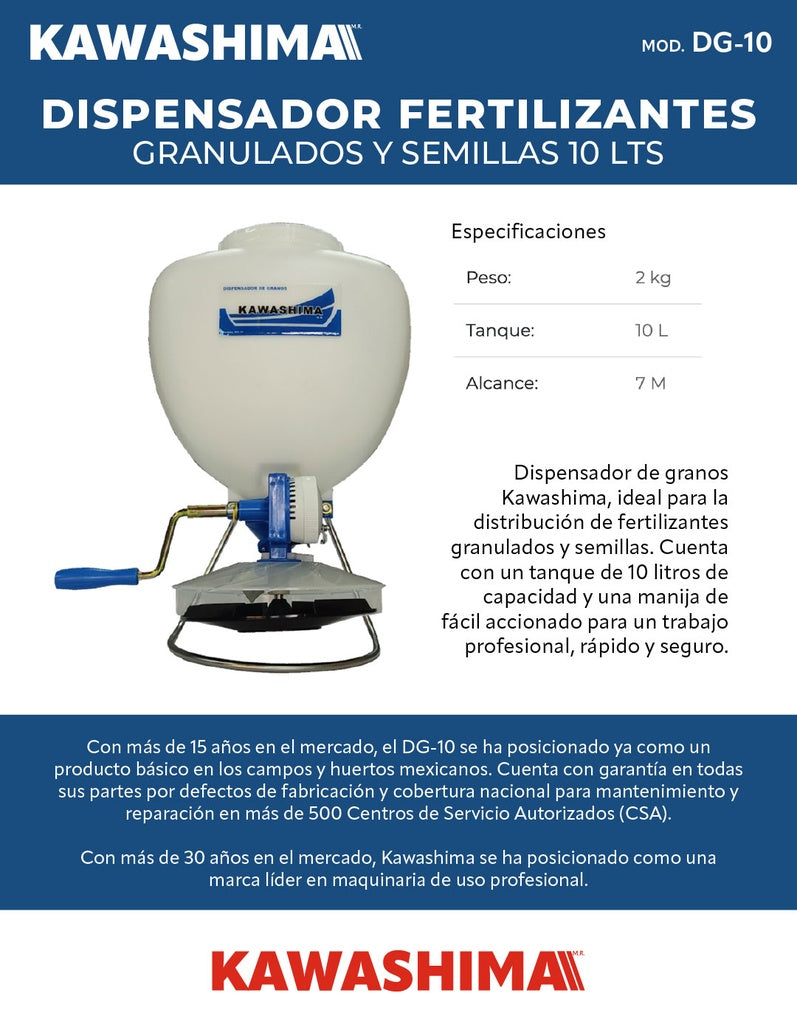 Dispensador fertilizantes granulados y semillas 10 lts Kawashima DG-10