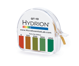 Los papeles de prueba o tiras de testeo para prueba de Desinfectante Hydrion han gozado de confianza mundial durante casi 40 años para probar la concentración en soluciones desinfectantes para la industria: QT-10 es formulado para complejos cuaternarios de 2 cadenas con medidas en el rango de 0-400 partes por millón (ppm), QT-40 es para cuaternarios de 4 cadenas, 0-500 ppm, y QC-1001 es para cuaternarios de 2 cadenas de alto rango, 0-1000 ppm.