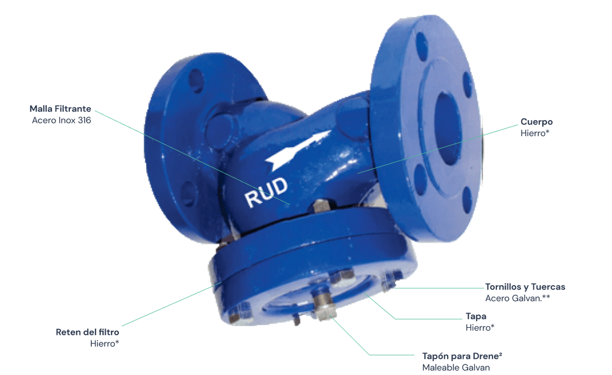 Filtro en "Y" de hierro dúctil 250 CWP Marca RUD FIG. D234 de 3"