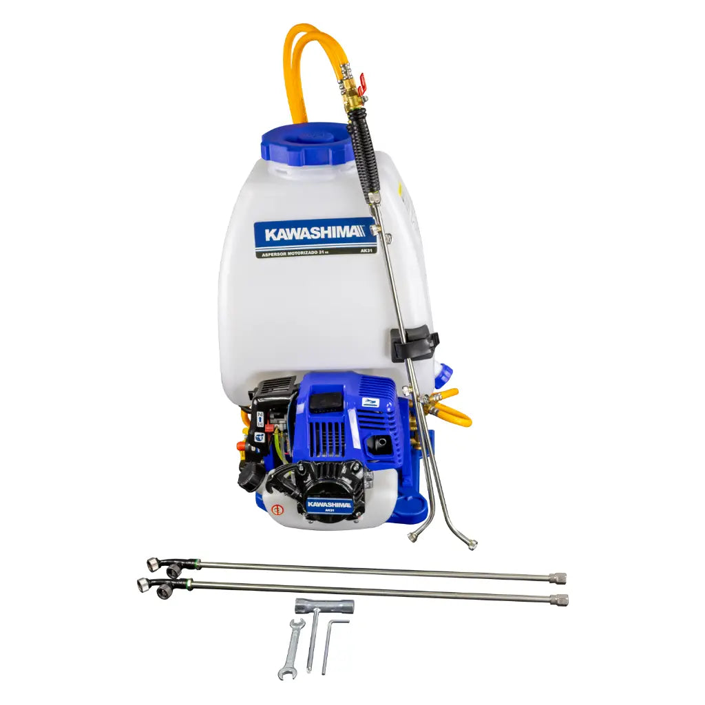 Aspersor motorizado de alta potencia equipado con motor Kawashima de 31 cc y 4 tiempos, diseñado para aplicaciones agrícolas y de jardinería profesional. Ofrece rendimiento confiable y eficiente en trabajos de fumigación, riego y tratamiento de cultivos. Su motor de combustión interna proporciona potencia sostenida para operaciones prolongadas, mientras que su construcción robusta garantiza durabilidad en condiciones de campo exigentes. Ideal para agricultores y profesionales que requieren equipamiento de aspersión de calidad industrial con bajo consumo de combustible.