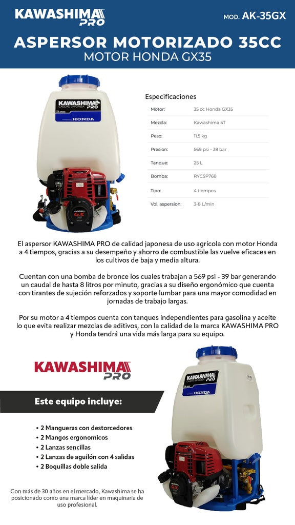 Aspersor motorizado 35 cc motor honda GX35 Kawashima Pro AK-35GX