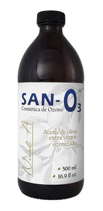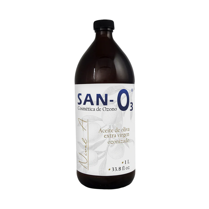 SAN-O3 de Ozono Carbar's es un aceite ozonizado que aporta una gran humectación a la piel dándole frescura activando la microcirculación y estimulando la formación de plaquetas, colágeno y elastina para lograr una regeneración más rápida de la piel y tejidos. Todo esto debido al aporte de oxígeno y ozónidos presentes en el producto, los cuales se liberan en contacto con la piel.