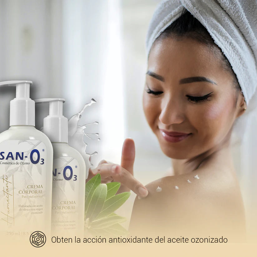 La crema humectante corporal ozonizada está elaborada con ingredientes naturales que ayudan a mantener una humectación y suavidad duradera de la piel, brinda la acción antioxidante del aceite ozonizado sin sensación grasosa.