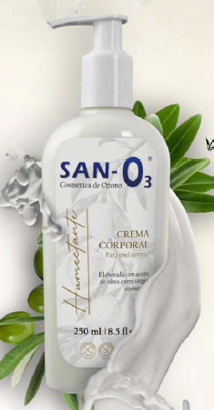 Los productos derivados SAN-O3, son productos formulados con aceite de oliva extra virgen ozonizado como ingrediente principal, elaborados para diferentes necesidades cosméticas brindando una experiencia agradable de olor y textura.