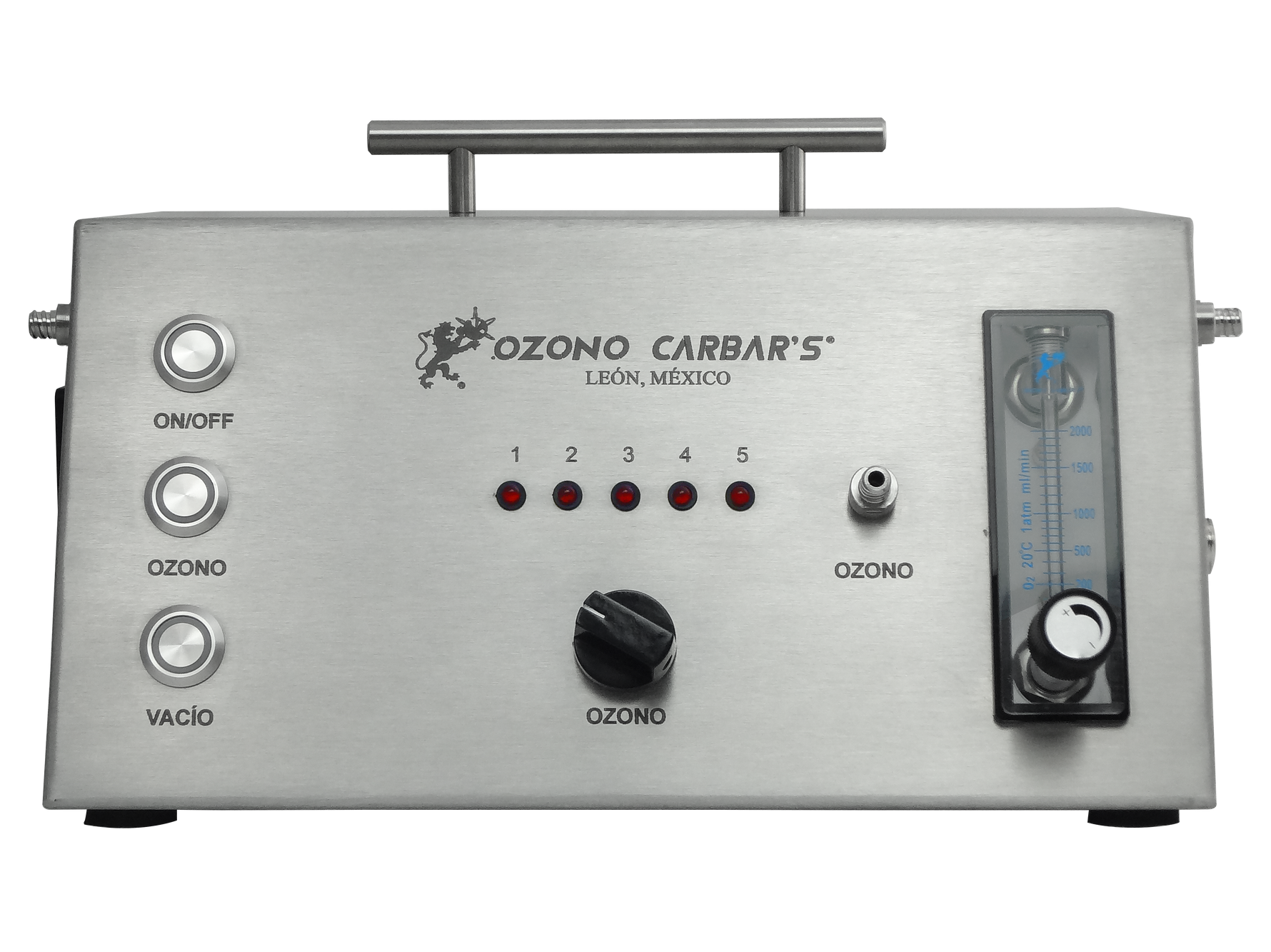 * Las concentraciones de Ozono se obtienen se obtienen mediante la combinación del flujo de Oxígeno y el selector de intensidades (1 - 5) del equipo.