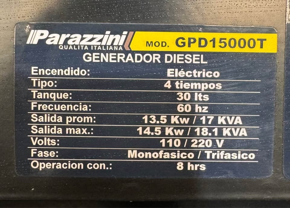 Generador diesel 15000 wats arranque electrico trifasico Parazzini GPD15000T