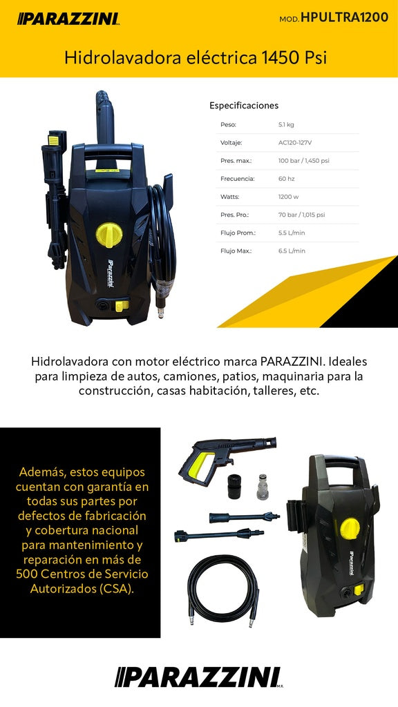 Hidrolavadora eléctrica 1450 Psi Parazzini HPULTRA1200