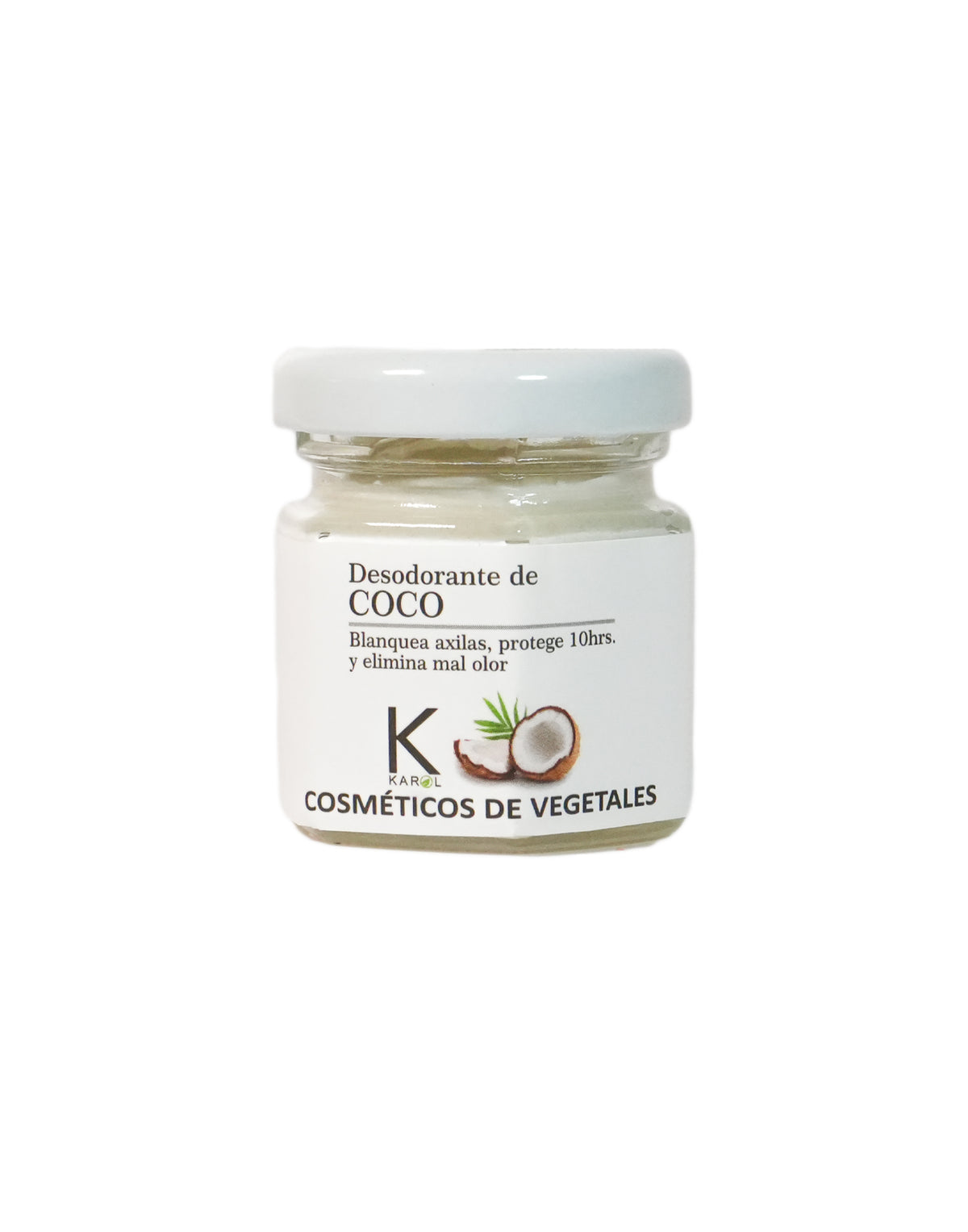 Elimina el olor hasta por 10 horas ,no manchas , elimina toxinas y bacterias que causan el mal olor de la zona axilar. Se elabora una mezcla entre activos ecológicos y el coco para poder crear una fórmula efectiva, libre de tóxicos y aluminio. No mancha Antimicrobiano No obstruye los poros, Elimina toxinas y bacterias que causan el mal olor de la zona axilar Elimina el mal olor hasta por 10 hrs.