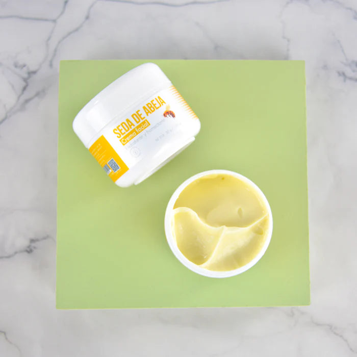 La crema facial Seda de Abeja contiene una mezcla que proporciona hidratación profunda, gracias al aceite de oliva, mientras que la cera de abeja actúa como barrera protectora para retener la humedad. El aceite esencial de romero aporta propiedades antioxidantes y estimulantes para la piel, y la vitamina E contribuye a la salud general de la piel. En conjunto, estos ingredientes naturales ayudan a nutrir, proteger y revitalizar la piel, ofreciendo una experiencia facial rejuvenecedora y equilibrada.
