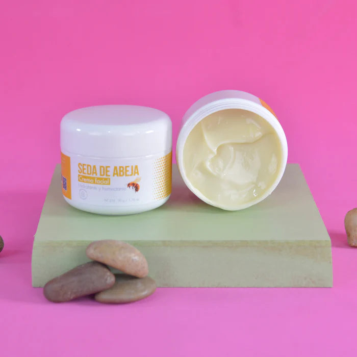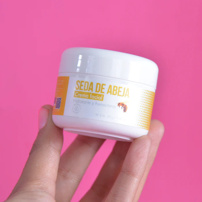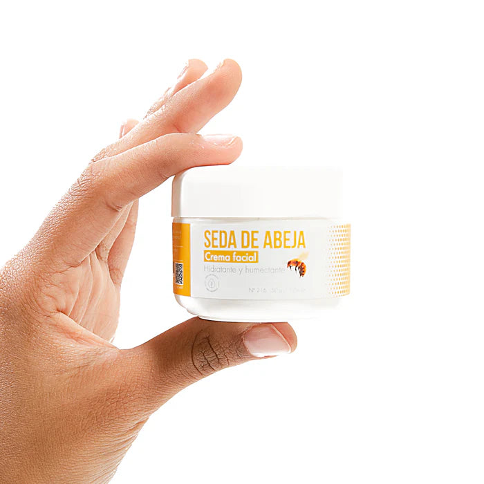La crema facial seda de abeja es libre (no contiene) de parabenos, petrolatos, aceite mineral, fragancias sintéticas, ftalatos, formaldehídos, aluminio, ni féculas de organismos genéticamente modificados.