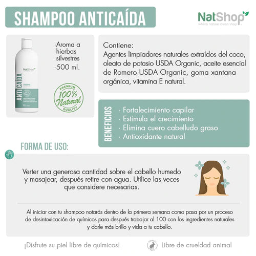 Durante la primera semana de tratamiento con tu shampoo natural anticaída, tu cabello pasa por un proceso de desintoxicación de químicos para después trabajar al 100% con los ingredientes naturales y darle más brillo y vida a tu cabello.