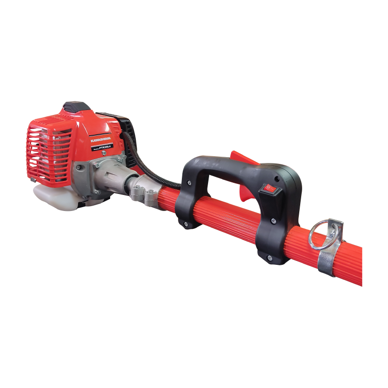 Motosierra telescópica Kawashima PTK26L4 con motor de 26 cc y alcance extensible de hasta 4 metros. Equipada con barra de 10 pulgadas, ideal para poda de árboles y trabajos en altura sin necesidad de escaleras. Su diseño telescópico permite acceder a ramas difíciles de alcanzar, mientras que el motor de gasolina proporciona potencia consistente para cortes limpios y eficientes. Perfecta para jardinería profesional y mantenimiento de espacios verdes.