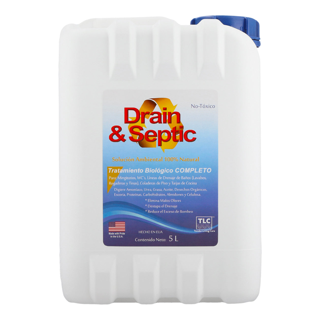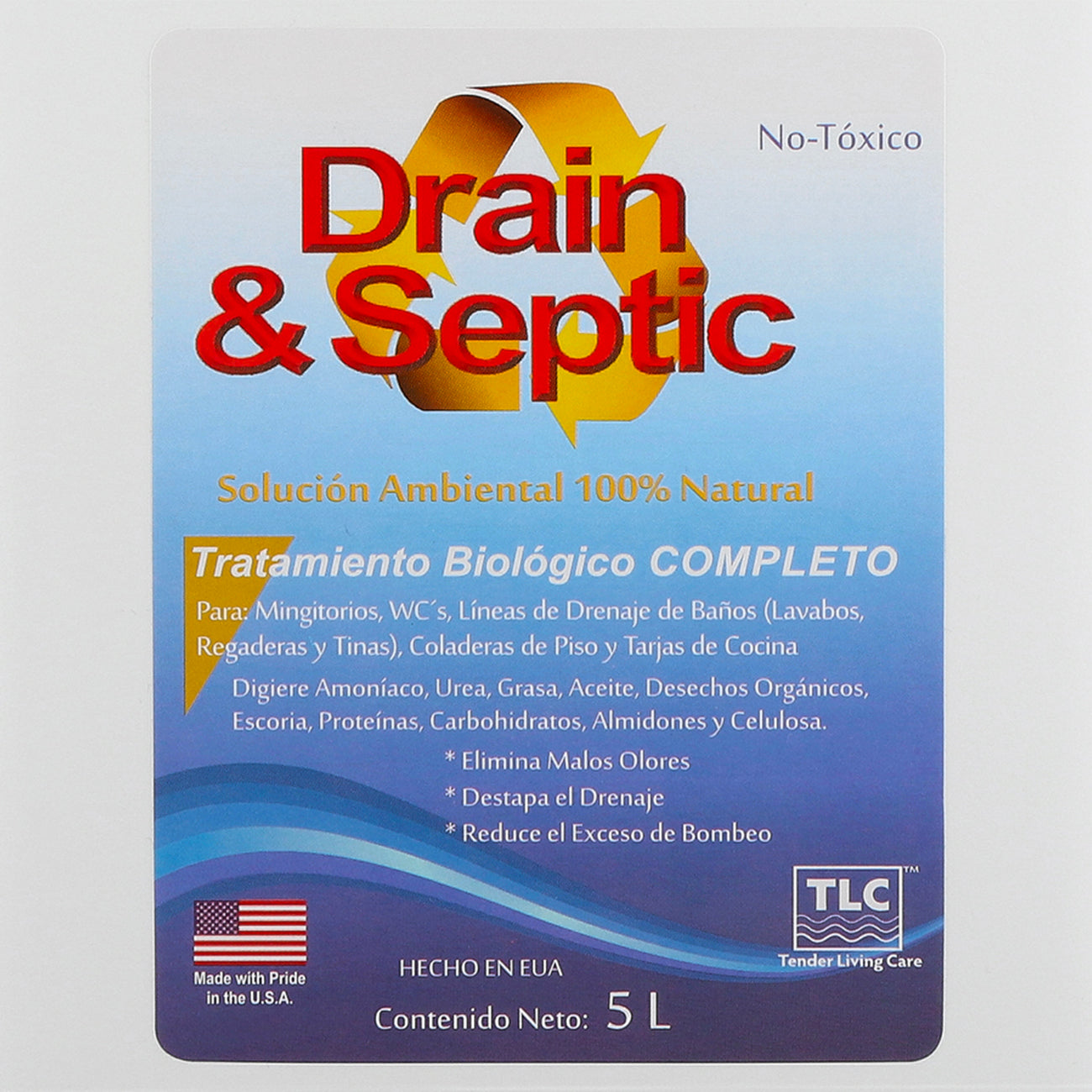 Drain & Septic es una suspensión líquida de mezcla de bacterias nitrificantes vivas y activas digestoras de amoniaco y urea, lo cual mejora la nitrificación y la remoción general de demanda química de oxígeno, así como mezcla de bacterias vivas y activas altas productoras de exoenzimas incluyendo lipasa, amilasa y proteasa, capaces de solubilizar y digerir grasa, aceite, lodos, proteínas, carbohidratos, celulosa y almidón a través de un procedimiento de alta solubilización de materias coloidales y partículas en el tratamiento de aguas residuales, generadas por las descargas de aguas residuales en cocinas, núcleos de baños, registros de drenaje, cárcamos y plantas de tratamiento biológicas de aguas residuales, con el objeto de mejorar la calidad de los efluentes y por consecuencia disminuir al mínimo olores sulfurosos, así como mejorar la estabilización de lodos, reducir la producción de lodos activados y los trabajos de limpieza ocasionados por obstrucciones en cañerías y drenajes.
