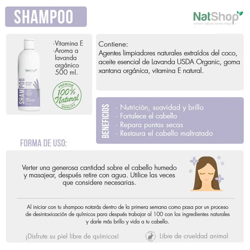 Shampoo Natural Lavanda y Vitamina E - 500ml