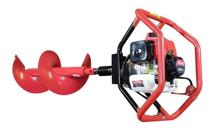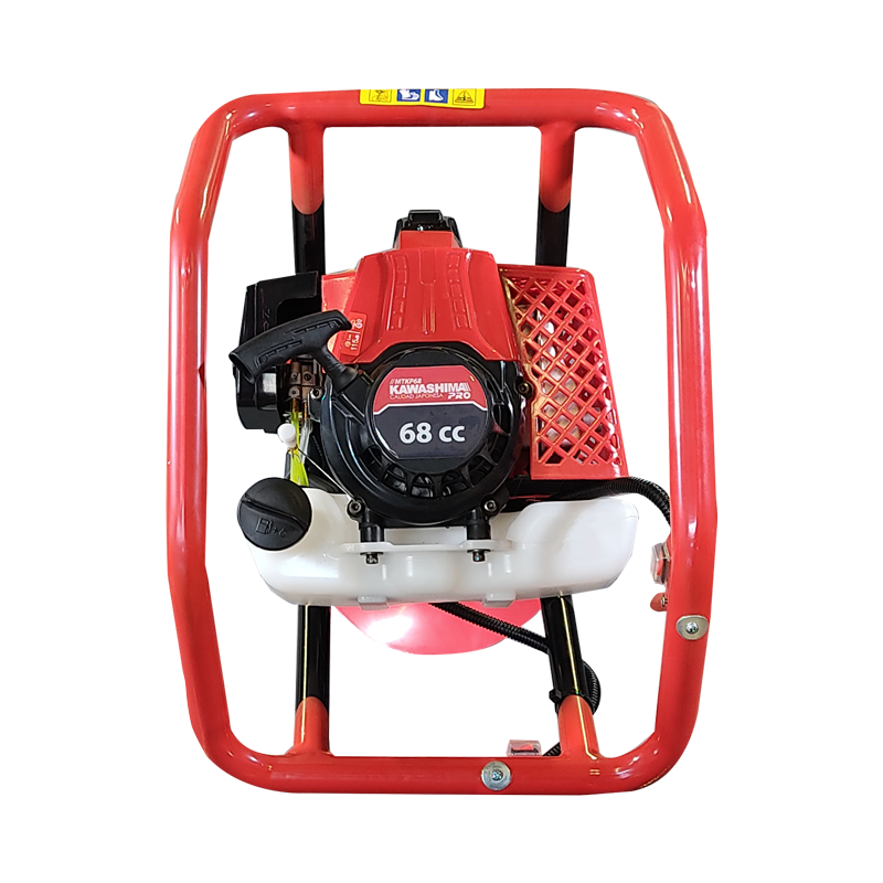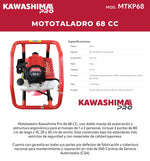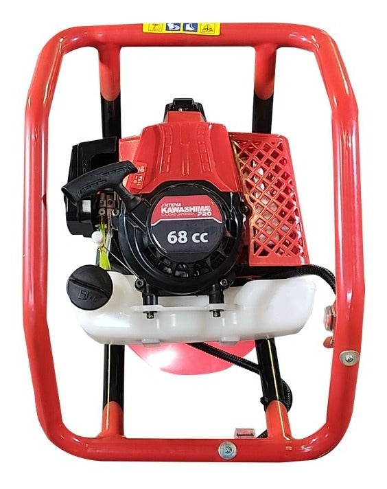 Mototaladro Kawashima Pro de 68 CC, con doble manija de aceleración y estructura ergonómica para el manejo de 1 o 2 personas. Incluye 3 puntas de 80 cm de largo y 10, 20 y 30 cm de ancho. Está construido bajo los estándares más estrictos de seguridad y con materiales de calidad japonesa. Cuenta con garantía en todas sus partes por defectos de fabricación y cobertura nacional para mantenimiento y reparación en más de 500 Centros de Servicio Autorizados (CSA).