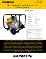 Motobomba 16 hp 4 tiempos ohv autocebante 6 pulg Parazzini BP1660