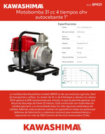 Motobomba 31 cc 4 tiempos ohv autocebante 1 pulg Kawashima BPK31
