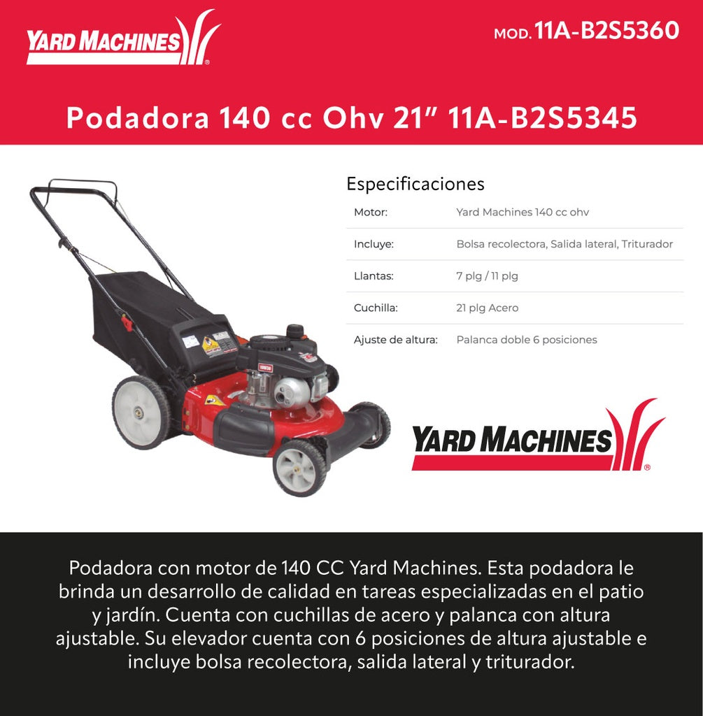 Podadora 140 cc Ohv 21 pulg. 11A-B2S5345 Yard Machines 11A-B2S5360