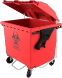Contenedor en polietileno alta densidad con tapa y ruedas de hule 1100 Lt Mod CLT 1100 CON PEDAL