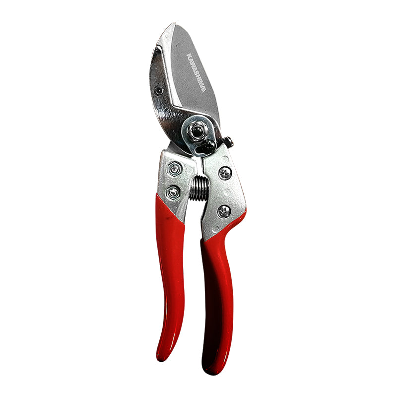 Tijera de precisión Kawashima 3170-1A con hojas curvas de acero inoxidable y cuchilla dentada que garantiza cortes limpios y seguros. Mangos ergonómicos en rojo con recubrimiento de teflón para mayor durabilidad y resistencia al desgaste. Diseño guillotina ideal para trabajos de jardinería, florería y tareas de corte profesional. Su construcción robusta asegura un rendimiento confiable en cada uso.