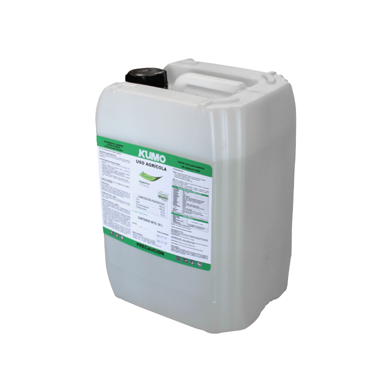 KUMO es un Coadyuvante 100 % soluble en agua, inhibidor de la evaporación del principio activo en solución acuosa.