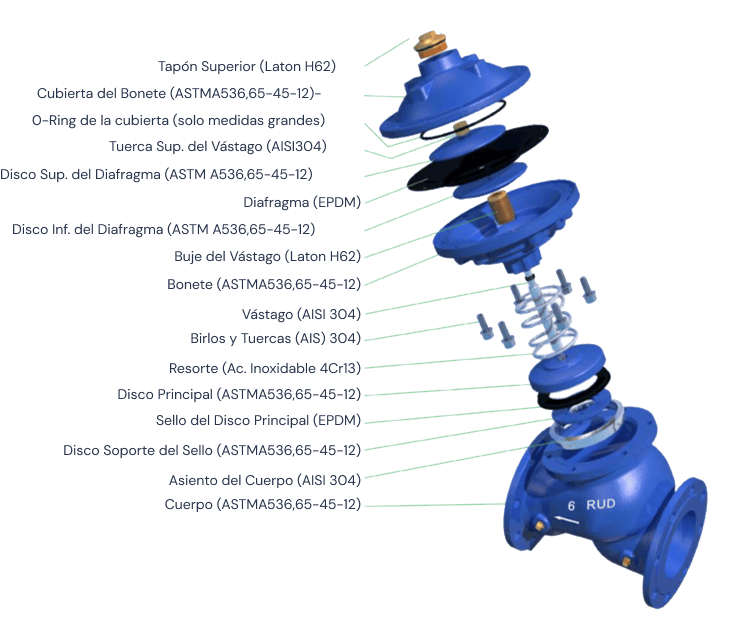 Válvula automática de control de hierro dúctil, aliviadora de presión y contra golpe de ariete 250 CWP Marca RUD Fig. D224-AP de 12"