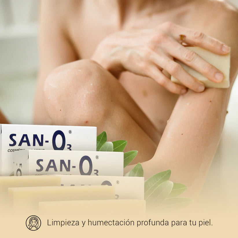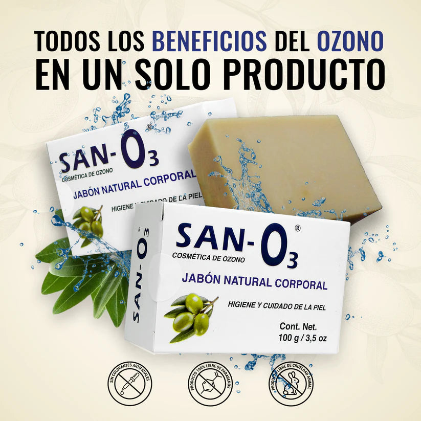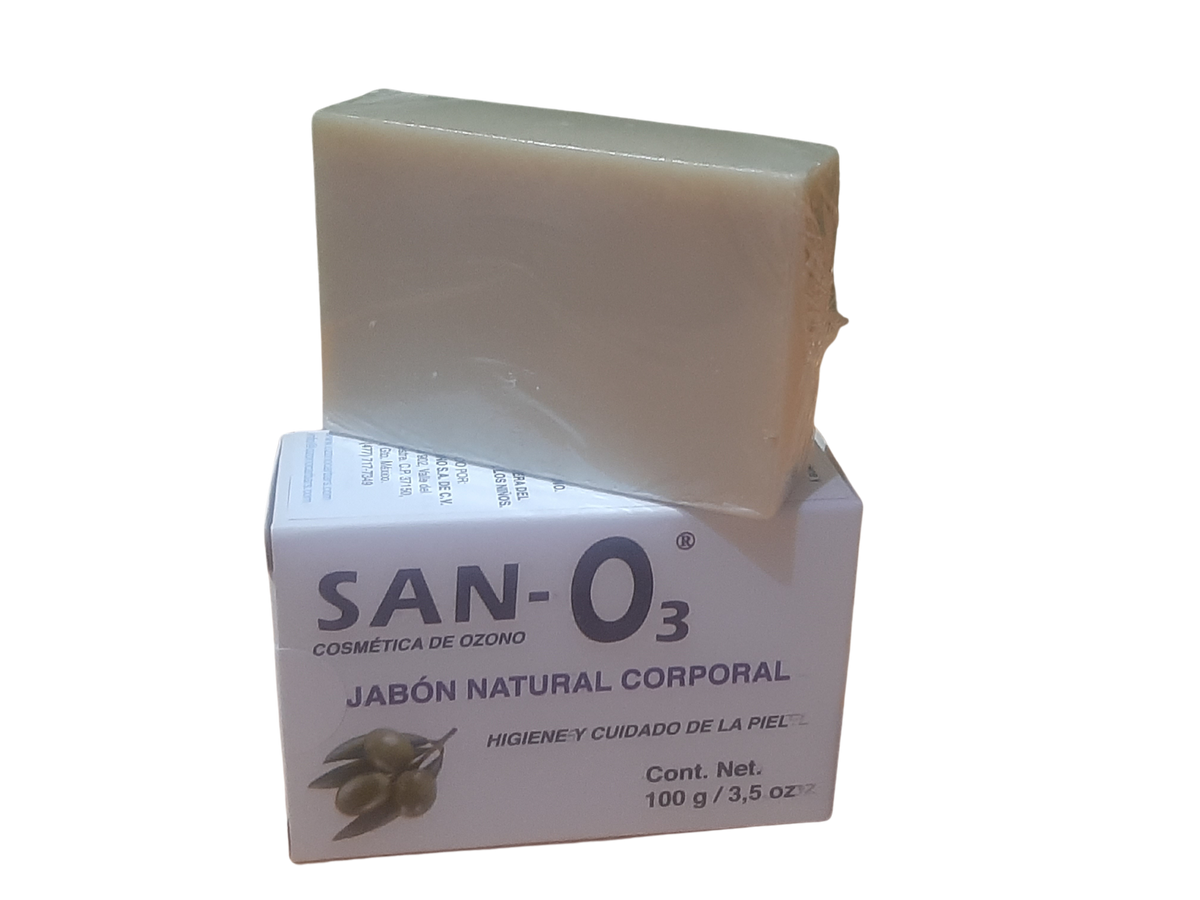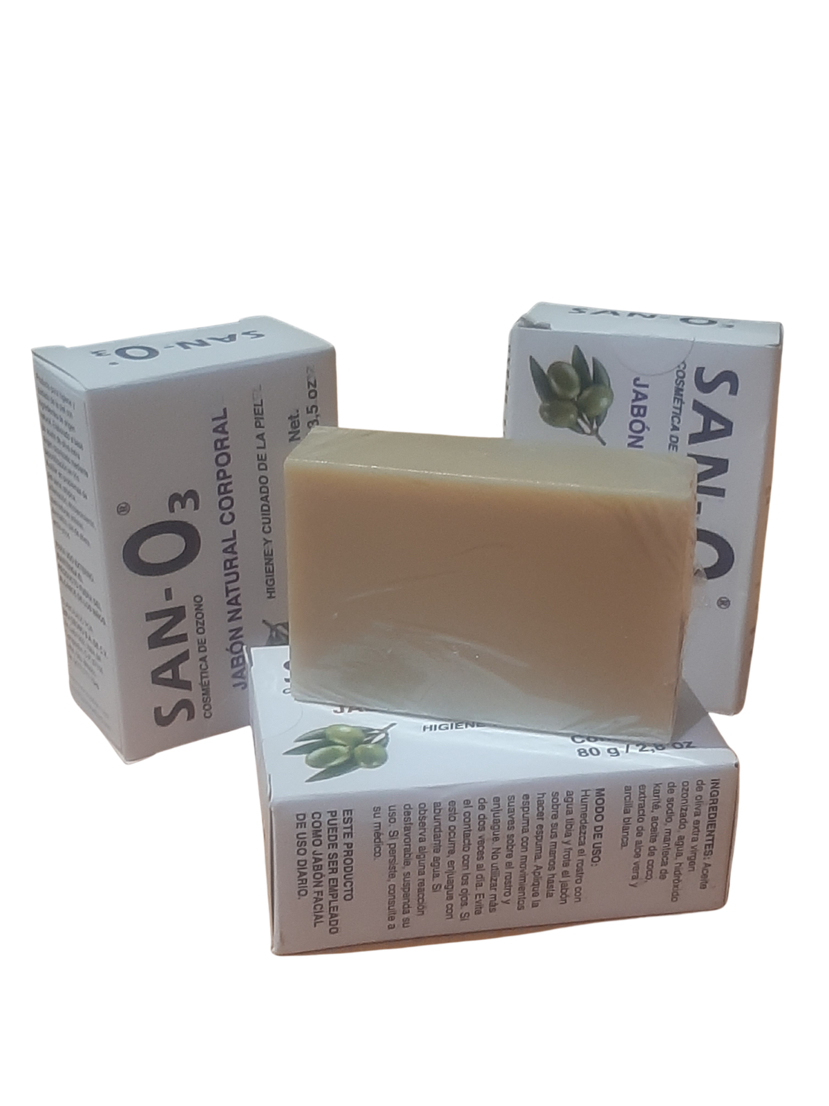Producto para higiene y cuidado de la piel con ingredientes de origen natural. Elaborado a base de aceite de oliva extra virgen ozonizado mediante saponificación en frío. Auxiliar en problemas de piel seca, atópica, inflamación, enrojecimiento, manchas y quemaduras solares, dermatitis, pie de atleta, entre otros.