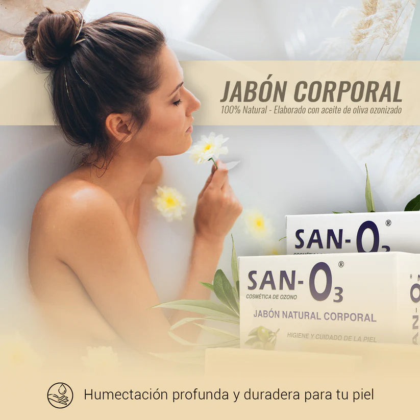 Jabón natural ozonizado corporal humectante, recomendado para piel normal o seca.